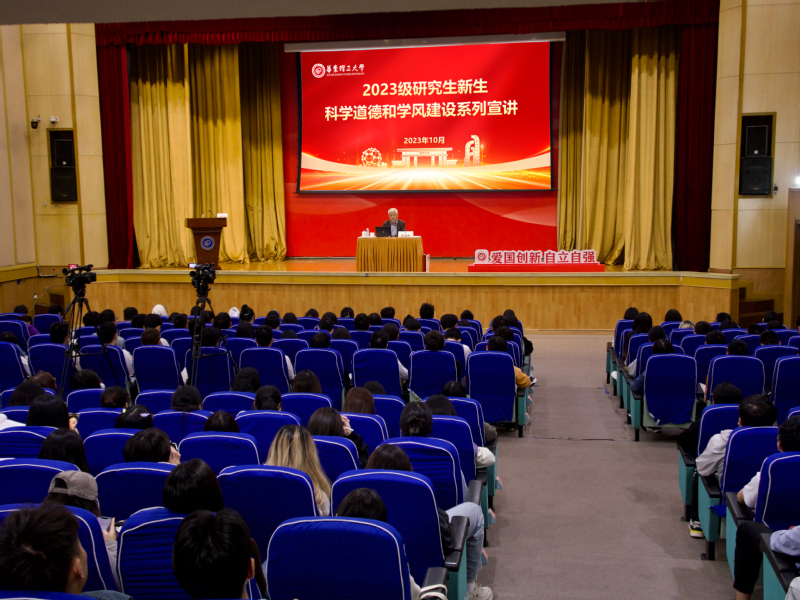 据悉,本次报告为2023级研究生新生科学道德和学风建设系列宣讲报告活动第二场,主会场设在华东理工大学徐汇校区逸夫楼报告厅,同时在18个学院分会场及“上直播”平台进行实时转播,活动得到信息化办公室的大力支持。