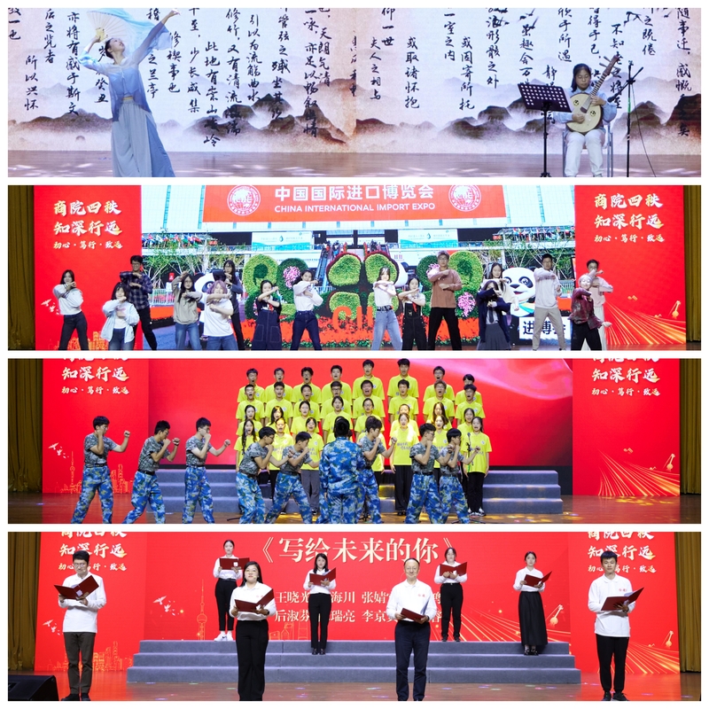 为推动理论学习提质增效,商学院创新性地将理论学习融入文艺表演,用“学习+文艺”的方式寓教于乐,做到理论学习入脑入心,同时在轻松愉快的氛围中加强教职工与新生的交流,增进师生情谊。2023级新生代表带来的《五四风雷》通过情景剧的形式引领新生在家国故事的浸润中牢记历史、传承使命、主动担当。防诈骗主题情景剧《学习捷径》通过生动形象的表演引导师生增强防诈意识、提升防诈本领。心理剧《三十七度灰》讲述了两个正在经历迷茫与伤感的学生通过互换人生理解家人、重拾热爱、强大内心的故事。志愿服务主题节目《年轻的力量》融合情景剧与舞蹈表演形式展现了奉献、友爱、互助、进步的志愿者精神。其他合唱及舞蹈表演亦是精彩纷呈,赢得阵阵掌声。活动最后,由退休教师、新生班导师、思政辅导员和学生代表共同朗诵《写给未来的你》,用充满诗意和力量的语言激励大家坚定信仰、追逐梦想。