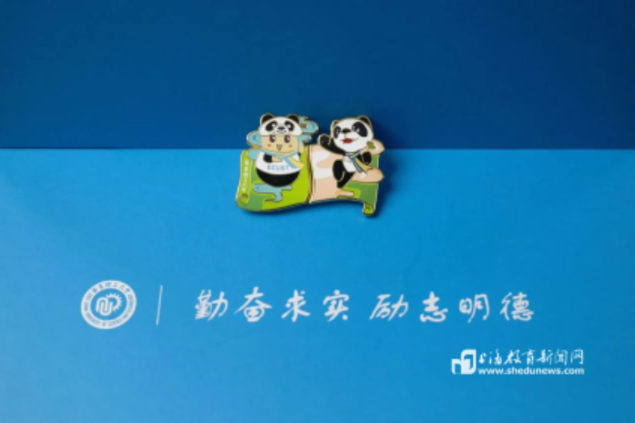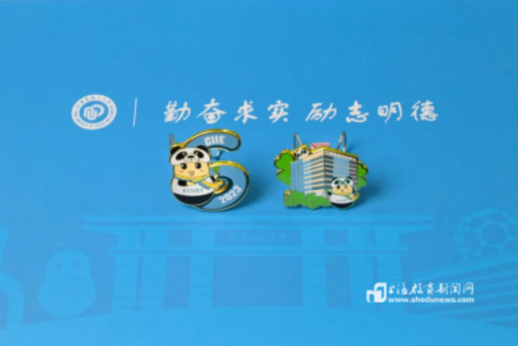 一系列独家定制的华理版进博文创产品,展现了这群“小叶子”的风采与进博精神。如,进博会三款定制徽章,融合了华理特色的建筑——图书馆和大片四叶草,可爱的进宝趴在建筑物左上方,右下角的小梨高举双手向世界招手。数字“6”象征着第六届进博会,小花梨手持象征幸运的四叶草,装扮成可爱的进宝闪亮登场,在世界舞台上展现华理人的风采。