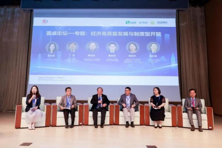 圆桌论坛以“经济高质量发展与制度型开放”为主题,在华东理工大学商学院董银果教授的主持下,复旦大学教授、欧洲问题研究中心主任、上海欧洲学会会长丁纯,世界贸易组织中国讲席教授、上海市国际贸易学会会长黄建忠,华东师范大学经济与管理学院院长殷德生教授等专家分别围绕“全球产业链供应链安全”“进口贸易与中国经济高质量发展”“双循环经济新发展格局”等前沿热点问题展开热烈深入的讨论。