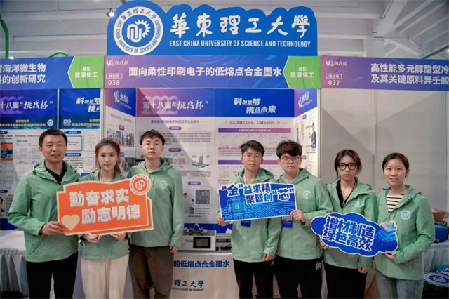 第十八届“挑战杯”全国大学生课外学术科技作品竞赛终审决赛日前在贵州大学举行。华东理工大学首次获得“挑战杯”全国大学生课外学术科技作品竞赛特等奖,取得历史性突破。捧得“挑战杯”国赛特等奖的“面向柔性印刷电子的低熔点合金墨水”项目团队,因这样一个项目,也让一群“科研小白”本科生变身成了 “科创牛人”。