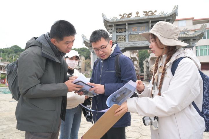 11月25日,林轶南和“鼓岭家·谱”研究团队在连江川石岛通过航拍比对建筑遗址位置。
