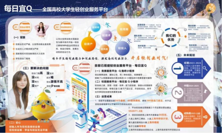 正是这次比赛经历,让坚定创新创业的想法在范吴甜心中生根发芽。2021年,范吴甜从新疆大学推免至华东理工大学高等教育研究所读研。怀揣着创业想法的她,发现在校大学生创业十分困难,便开始寻找能够契合在校大学生的创业模式。在指导老师的建议下,“轻资产、轻技术、轻风险、轻时间、轻投入、轻周期”多轻维度的“轻”创业理念应运而生。