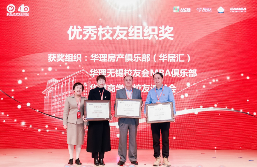 华东理工大学商学院原副院长黄庐进为无锡校友会MBA俱乐部、商学院房产俱乐部(华居会)、商学院校友读书会颁发优秀校友组织奖。