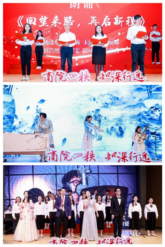 会上,华东理工大学商学院师生共同表演了诗朗诵《回望来路,再启新程》、古风舞与现场作画《青花瓷》、院庆原创歌曲合唱《商愿》等。