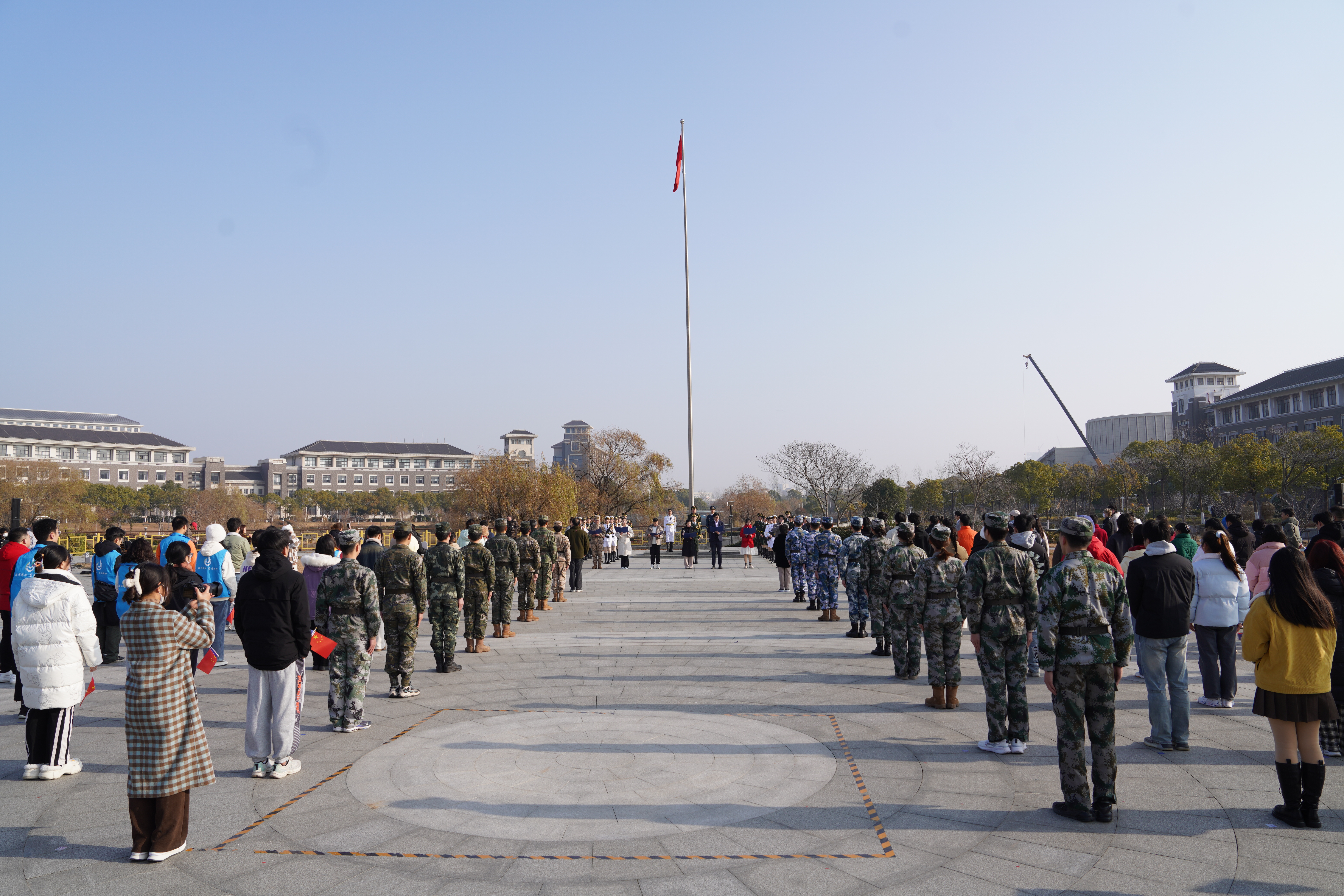 迎着朝阳,上海海洋大学150余名师生齐聚在学校海洋广场,隆重举行升旗仪式。老中青教师代表、优秀校友、退伍大学生、学生骨干、留学生、少数民族学生等代表组成的群诵方阵,在朝阳的沐浴中,在国旗的注视下,共同朗诵的《海洋奋斗曲》。