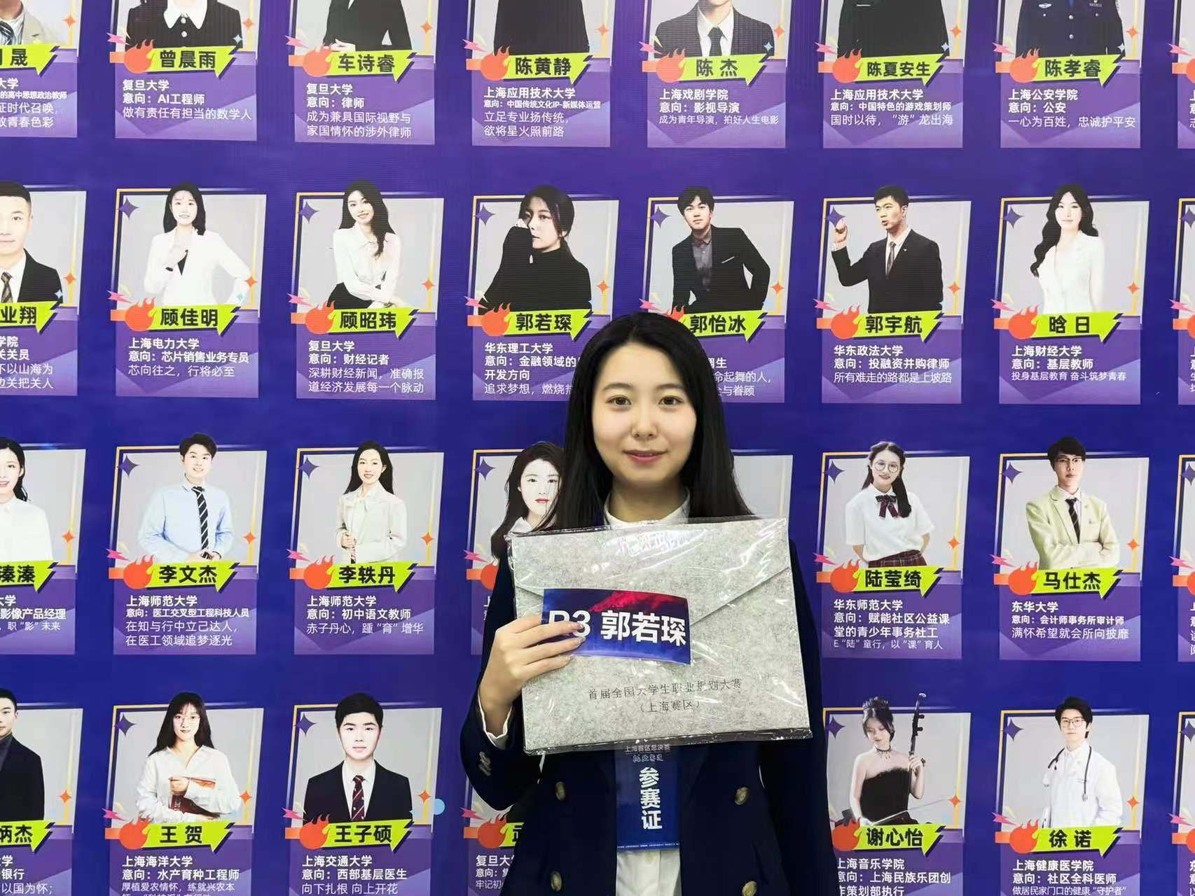 人物名片:郭若琛,中共预备党员,华东理工大学商学院计算机金融双学位专业2024届本科毕业生,获首届全国大学生职业规划大赛上海赛区就业赛道总决赛金奖,在秋招期间获得字节跳动、阿里巴巴、蚂蚁金服、美团等多家公司的录用通知。
