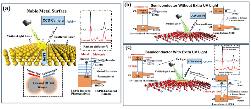图1:表面增强拉曼光谱用于光催化反应研究的示意图