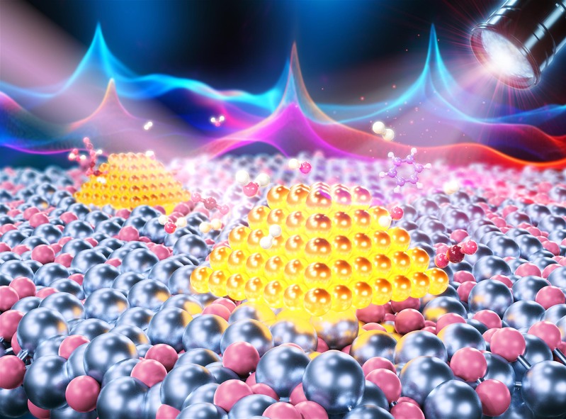 图2:利用表面增强拉曼光谱探究在贵金属或半导体材料表面发生的光催化反应的示意图