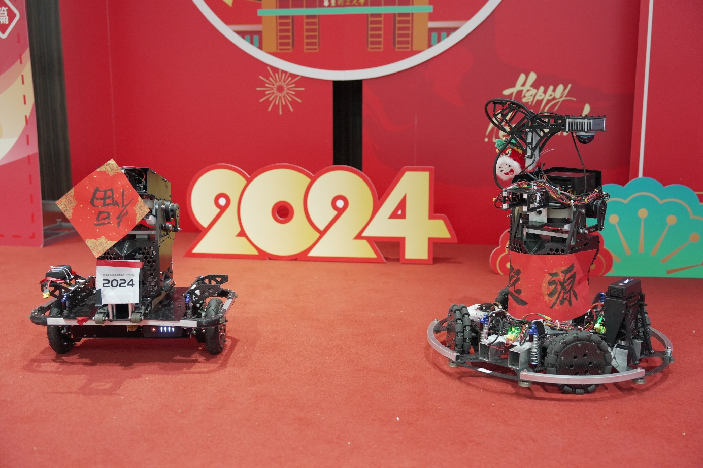 在华东理工大学校园,这几天也洋溢着喜庆吉祥的迎新氛围。学生公寓门口挂上吉祥对联和大红灯笼,门廊间点缀着各式窗花和迎新小摆件,宿管阿姨们还为留校学子送上亲手编织的围巾、小挂件。在迎新联欢会现场,由该校信息科学与工程学院研究生陈加昊带队的机甲大师起源战队研发的“Long”机器人为师生送“福”的表演嘉宾让气氛达到高潮。