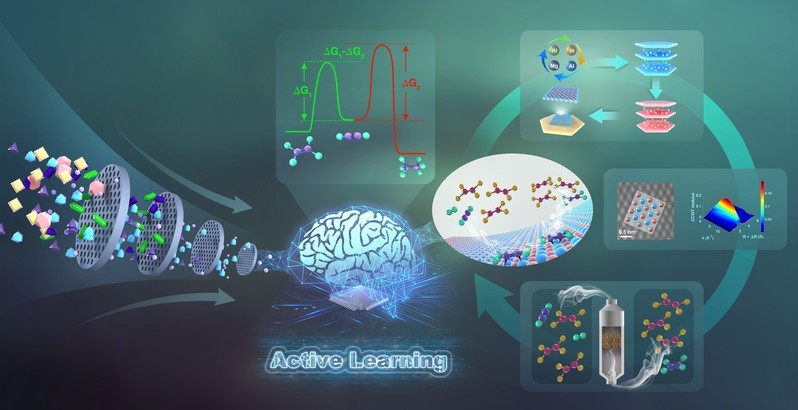 近日,华东理工大学催化反应工程团队段学志教授、曹约强特聘研究员等在数据驱动的高性能低碳炔烃选择性加氢催化剂设计与创制方面取得新进展,基于机器学习构建的催化剂高通量筛选模型,快速筛选能够在原子尺度精准调控Ni活性位点结构的客体金属,实现了关键物种构型匹配以及目标反应路径的定向调控。相关成果以“主动学习策略辅助的炔烃选择性加氢催化剂原子设计”为题在线发表在《美国化学会志》上。