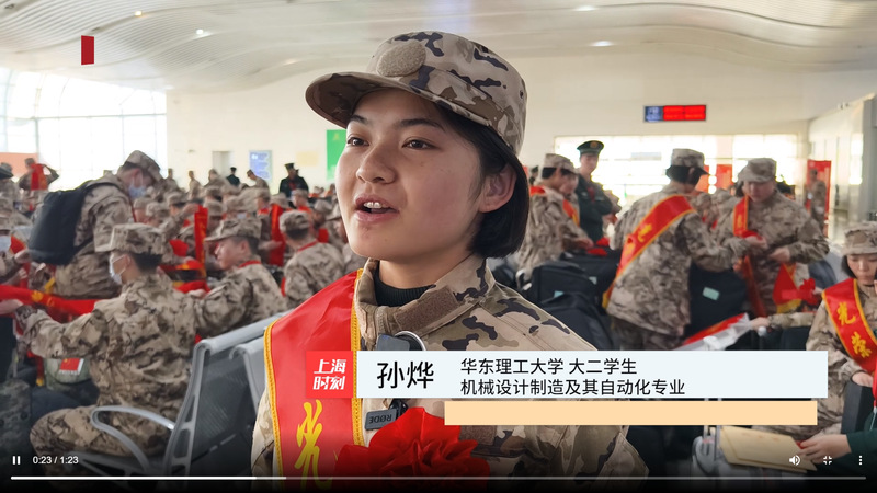 上海交通大学新兵李海全激动地说,很荣幸能够成为人民子弟兵的一员,入伍后将不断奋进,用青春和热血捍卫万里山河、守护万家灯火。