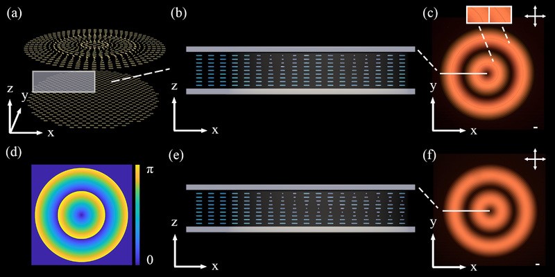 由于其在宽波段工作旋光的特性,该矢量光发生器有望应用于宽波段复用的特征通信,可形成任意连续分布且不损失强度的偏振特征。信号源的识别可以在信号接收端检测实现,无需额外占用通信带宽。该器件还可以将入射光分割为多个极化状态,实现分离传输。这种旋光后的分离传输形式具有加密通信的潜力,并有望实现宽波段多路复用。