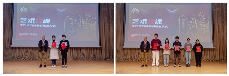 2023年,艺术设计与传媒学院专门成立了“艺术党课工作室”,党课的筹备和组织逐步体系化、规模化,党课与专业教育的融合也更加紧密。借此五周年纪念活动之际,柳冠中为“艺术党课工作室”首批成员颁发聘书,以此鼓励更多同学参与到艺术党课的建设中来。