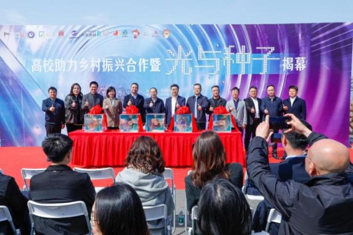 仪式上,陈跃和汪军共同签订了华东理工大学——浦江镇产学研基地合作协议。唐劲松、沈海涛、姜皓共同为“光与种子”艺术装置剪彩。蔡福康、孙二平、赵菡、姜皓、陈跃共同为“光与种子”艺术装置注入种子球。