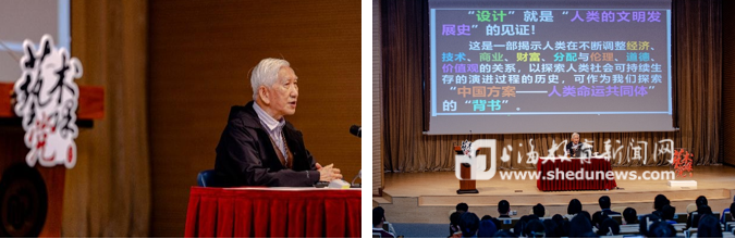 现场,柳冠中讲授了题为“以设计的逻辑诠释‘中国方案’”的讲座。他从自己五十多年的设计和研究心得出发,将学生思想实际、国家发展和热点时事、专题教育和实践活动相结合,带领大家一起探寻解决中国问题的“中国方案”。