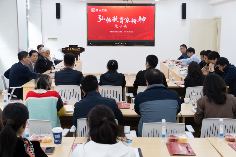 座谈会开始后,何鸣元院士回顾了自己与华东理工大学的合作交流,称赞了化工学院培养的优秀学生,并提出希望青年教师保持传统,为国家培养优秀人才。