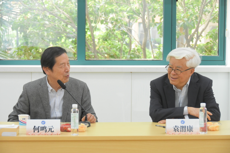 图片说明:何鸣元院士和袁渭康院士为青年教师解惑