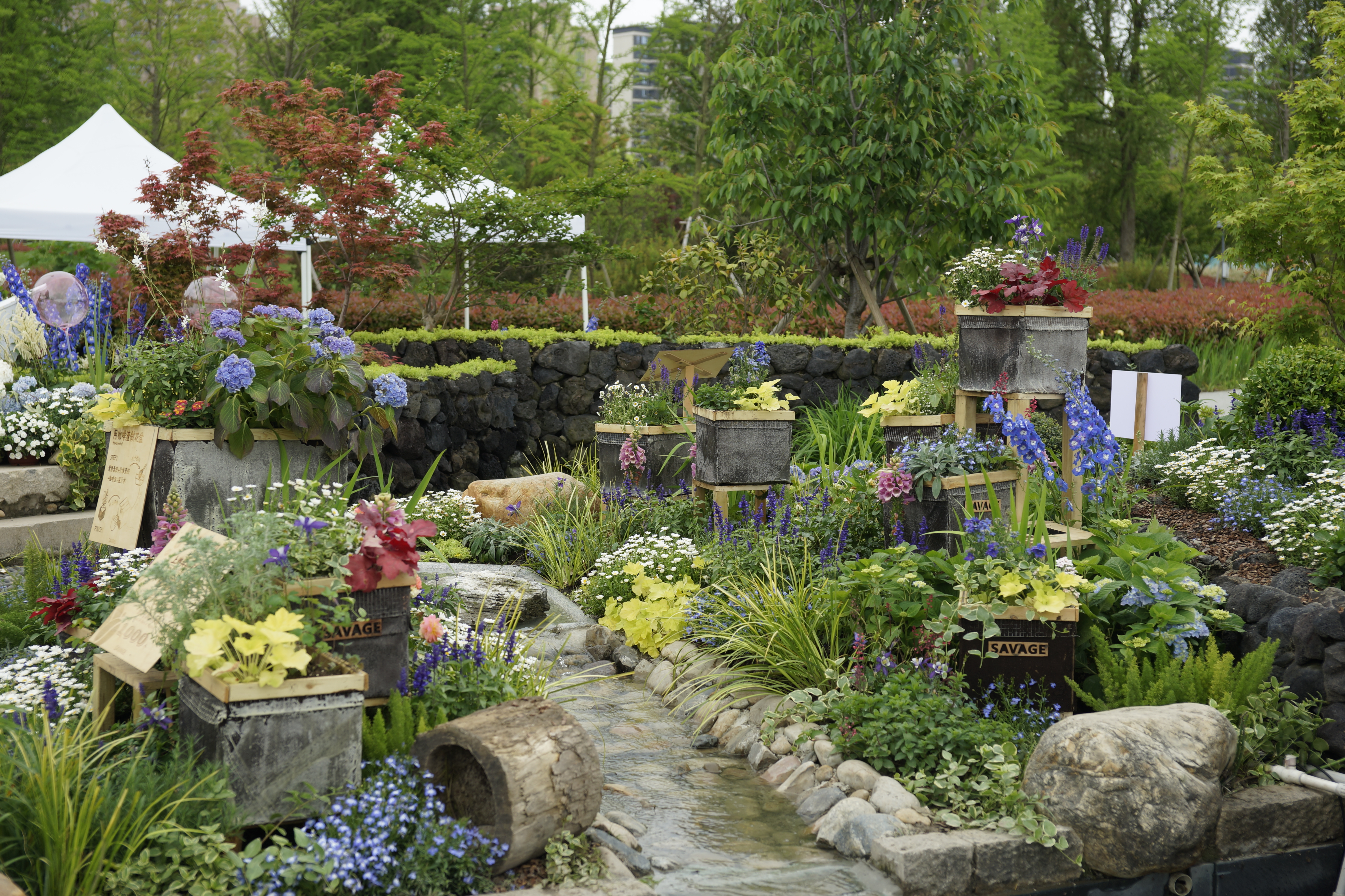 花园整体设计色调和谐统一,结构严谨美观,容器与场地本身的火山岩紧密搭配。在植物选择上,多为薄荷、迷迭香、白晶菊等日常生活中容易买到、养护成本较低的品种,为市民家中的植物种植提供样例灵感。