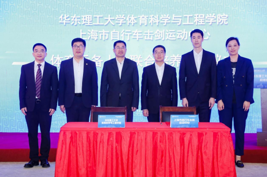 叶心明、陆叶分别代表华东理工大学体育科学与工程学院、上海市自行车击剑运动中心签署协议