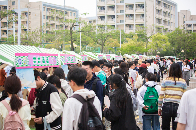 据介绍,市集持续开展两天,共设有18个摊位,分为春华探秘园(体验区)、春韵匠心坊(手作区)、春味食光集(美食区)3个区域。当天下午,随着“开市锣”的敲响,风檐广场瞬间热闹起来,各个摊位前聚集了一大批同学。琳琅满目的摊位和舞台表演让人目不暇接,现场气氛十分热烈。