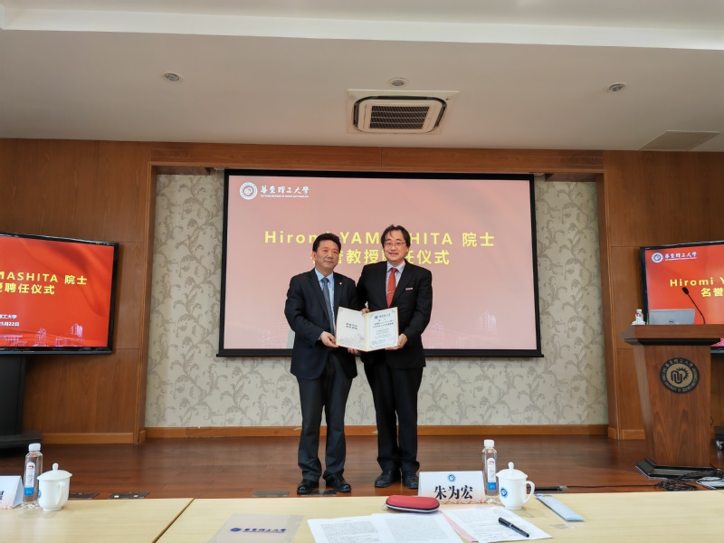 图片说明:朱为宏院士为Yamashita教授颁发聘书