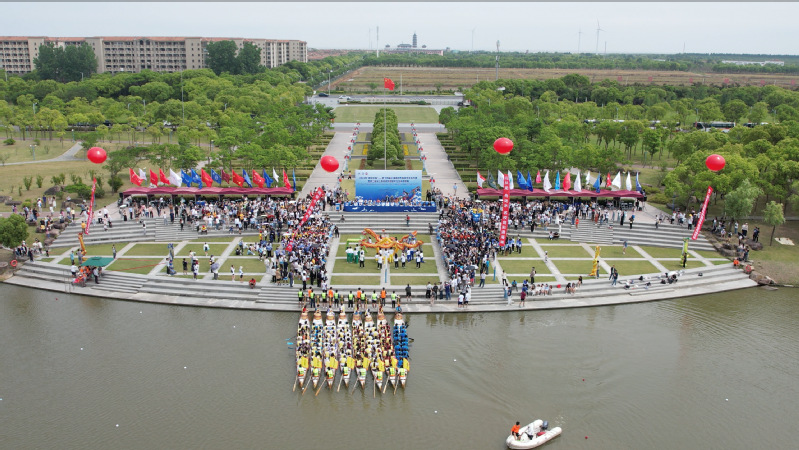 “喧江雷鼓鳞甲动,三十六龙衔浪飞。”端午节来临之际,5月25日,华东理工大学奉贤校区通海湖上热闹非凡。34支队伍、106个国家、765名参赛选手,江浙沪皖地区的留学生龙舟队挥桨竞逐,吸引了数千名观众汇集在通海湖畔一睹盛况。
