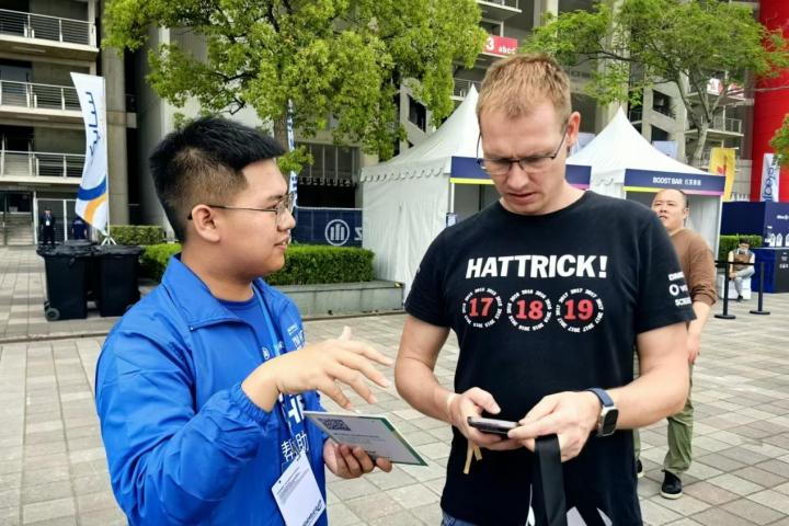 华东理工大学外国语学院硕士研究生陈香作为翻译,负责各类材料的英文翻译和协助外方培训工作。她凭借扎实的语言功底和专业的翻译能力,确保了赛事信息的准确传递,为国际友人和车手们提供了有效的支持。“如何找到自己的座位?”“哪里可以接水?”“纸质赛车头盔可以领取吗?”“车手见面会在哪里排队入场?”……志愿者们对赛事、场地信息的掌握确保了每一位观众都能获得满意的解答和顺畅的观赛体验。