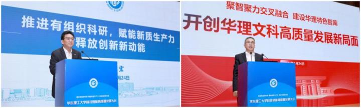 朱为宏和阎海峰分别以“推进有组织科研,赋能新质生产力 释放创新新动能”“聚智聚力交叉融合 建设华理特色智库 开创华理文科高质量发展新局面”为题,总结了华理科技创新现状、分析存在的未来瓶颈,并提出下一阶段科技创新重点举措。