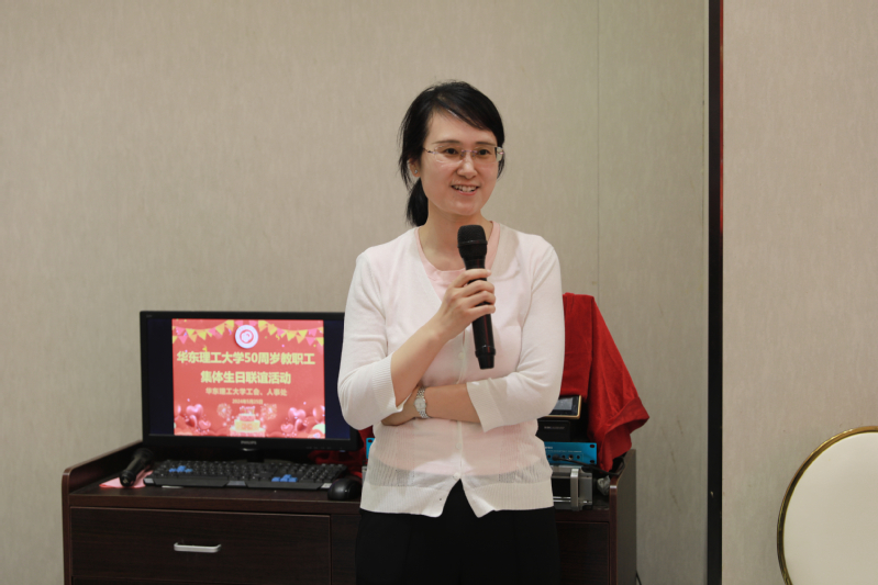 刘敏代表人事处向多年来在自身工作岗位上勤恳耕耘、无私奉献的50周岁教职工,表示诚挚的祝福和衷心的感谢。她表示,人事处将始终坚持以人为本、服务为先的工作理念,为老师们创造更好的育人环境,也请大家关注今年人事工作的改革举措,多提宝贵意见建议,并祝愿老师们生日快乐,身体健康,事事如意。