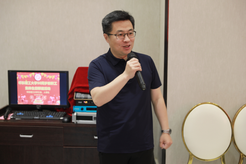 在中午的联谊活动上,龚跃首先代表学校向老师们送上诚挚的生日祝福。他表示,作为一名华理人,非常高兴能够参加工会、人事处组织的本次活动,与大家共同感受“家”的温暖。他谈到,作为同龄人,我们同道而行。“道”一方面是指伟大祖国的强盛之道。我们这一代沿着祖国改革开放的步伐成长起来,见证了祖国从富起来到强起来的光辉历程,也享有了更好的成长环境和发展机遇。也借此机会共同感谢党和国家,感谢伟大的时代。“道”也是指华东理工大学高质量发展之道。我们每个人都与华理的命运紧密相连,一代代华理人要勇担责任,共同努力,把华理建设得越来越好。