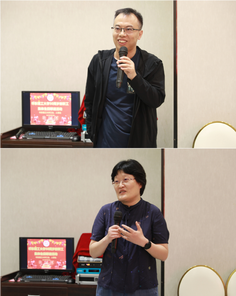 教师寿星代表化工学院杨景辉、外语学院王慧两位老师分享了到华理工作以来的点点滴滴和发展历程,感谢学校一直以来对老师们的关心和支持,特别感谢校工会、人事处与学院领导、同事对自身的关心帮助,也祝愿老师们在未来的日子里身体健康,继续为学校教育事业发展贡献力量。