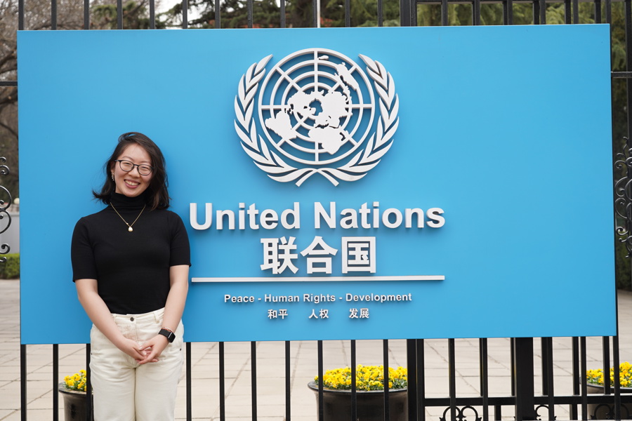 在读期间,她先后学习法语和俄语,远赴英国爱丁堡大学和加拿大多伦多大学做交换生,还修读了新闻学第二专业。在2023复旦大学“荣昶学者”全球治理夏令营中,她前往联合国开发计划署罗马办公室学习,还参观了联合国粮食及农业组织、世界粮食计划署。“当时最直观的一个感受是,工作人员中的中国面孔并不多,希望未来越来越多。”