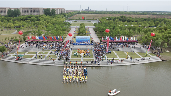 “比赛开始!”随着一声令下,龙舟如离弦之箭,水面上留下一道道波痕,现场气氛瞬间点燃。“轻凫飞燕各如云,飞桨逐浪竞风流”,划手们个个斗志昂扬,挥桨疾驰,好一派生龙活虎的场面;岸边的观众不时为龙舟队员们呐喊助威,现场人声鼎沸、热闹非凡,好一幅文化交融沟通的精彩画卷。