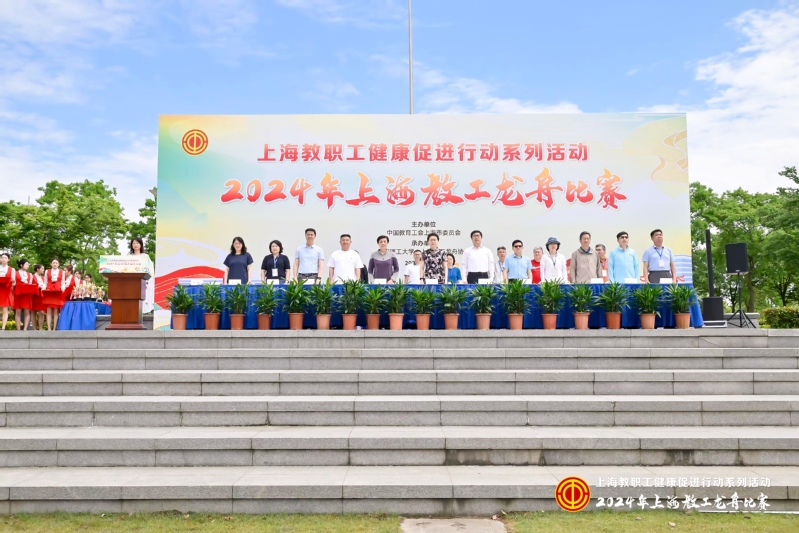 本次龙舟赛由上海市教育工会主办,华东理工大学、上海教工龙舟协会承办。上海市教卫工作党委副书记、上海市教育工会主席张艳萍,华东理工大学党委副书记、工会主席沈海涛,上海市教育工会兼职副主席、闵行区教育工会主席赵振新,上海市教育工会宣教文体部顾问顾红以及各参赛单位的领导、嘉宾及30支队伍近800名运动员出席开幕式,共同见证体验这场精彩纷呈的体育盛会。华东理工大学工会常务副主席朱姝主持开幕式。