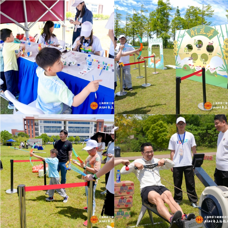 棹影斡波飞万剑,鼓声劈浪鸣千雷。各参赛队伍采用计时赛的方式,展开了激烈的角逐。随着开赛号令一响,各队龙舟如蛟龙出水奋勇向前,如离弦之箭奔向终点。选手们全神贯注,船桨齐舞,劈波斩浪,岸边助威和观赛的观众旌旗齐舞,群情激昂,欢声震天。为喜迎端午佳节,当日学校还组织开展了亲子嘉年华活动。