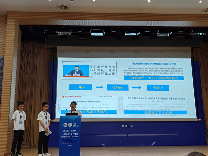 据悉,“寻是杯”全国大学生公共管理决策模拟大赛是目前国内公共管理学科领域最具影响力的本科生竞赛活动之一。赛事设计贴近实际、突出实践、注重创新,对于提高公共管理人才培养质量,培育服务国家治理现代化建设的高端公共管理人才具有重要的现实意义,也为推进公共管理专业人才培养模式改革贡献了有益探索。