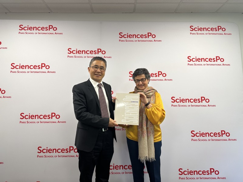 巴黎政治大学(Sciences Po)是位于巴黎市中心的世界顶尖社科类大学,被誉为“法国社会精英的摇篮”。本次访问为双方高层首次接洽,代表团一行受到西班牙前外长、联合国国际贸易中心前总干事、巴黎政治大学国际事务学院院长阿兰查·冈萨雷斯(Arancha González)女士及亚洲事务负责人艾蒂安·卡赞(Etienne Cazin)先生的热烈欢迎。冈萨雷斯女士表示,她曾两次参加华理主办的国际进口贸易论坛,对华理的学术成就、优美的校园印象深刻。希望以此次访问为契机,推动人员流动,促进学者合作,同时也欢迎华理学生到巴黎政治大学进行学习。阎海峰表示,华理一贯重视学生国际化培养,巴黎政治大学在国际组织、全球治理人才培养方面成绩斐然,希望双方加强合作,为学生创造更多机会。同时,也希望进一步拓展商、法及社会学领域的教师互访,积极推动我校优秀学者参加“巴政政策评估国际学者项目”。