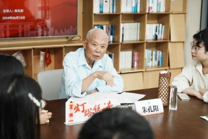 6月13日,“两弹一星”老党员、华东理工大学1960级老校友朱孔阳重回母校,为青年学生党员上了一堂生动的沉浸式微党课。一年前,华东理工大学的“00后”党员前往上钢新村街道“蘑菇云”党支部,聆听朱孔阳同志60年前从华理毕业毅然投身大西北,从事“两弹一星”工程的故事,共同开启“灯塔领读”系列沉浸式微党课的第一讲。今年,华东理工大学党委研究生工作部联合社会与公共管理学院、化学与分子工程学院邀请朱孔阳同志重回母校,为学生党员再上“灯塔领读”系列沉浸式微党课。