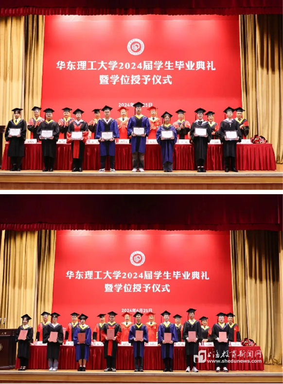 王慧锋宣读了学位授予决定,共3616人获学士学位,3673人获硕士学位,483人获博士学位。宋来宣读了优秀毕业生和优秀团员表彰决定:692人获得2024届华东理工大学优秀毕业生称号,412人获得2024届上海市优秀毕业生称号,372名赴基层、西部及重点行业领域就业代表获得校优秀团员称号。