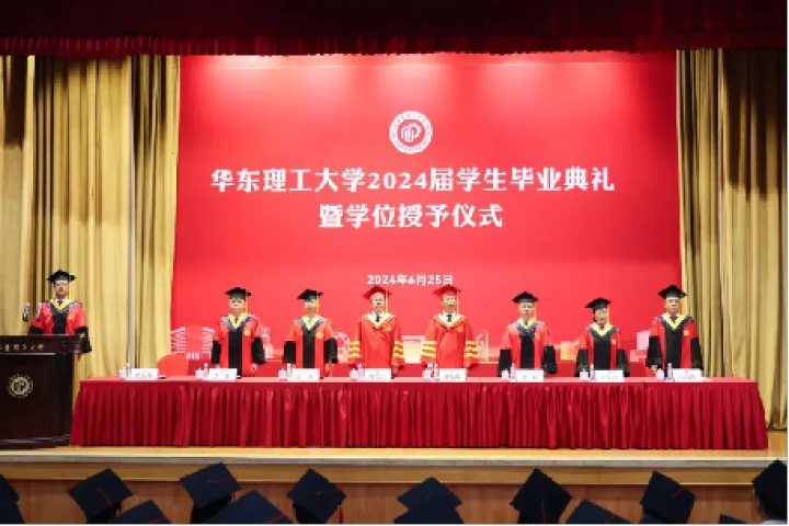 6月25日,华东理工大学2024届学生毕业典礼暨学位授予仪式在徐汇校区举行。典礼采用多会场直播方式,全体本、硕、博毕业生共同见证人生的重要时刻,共享华理人荣光,上好大学最后一课。