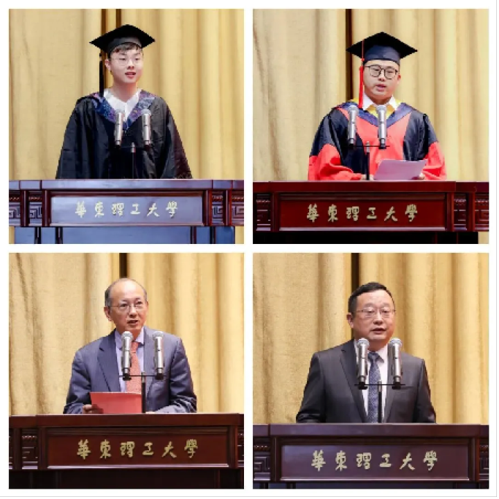 校党委常委、副校长王慧锋宣读了学位授予决定,共3616人获学士学位,3673人获硕士学位,483人获博士学位。宋来宣读了优秀毕业生和优秀团员表彰决定:692人获得2024届华东理工大学优秀毕业生称号,412人获得2024届上海市优秀毕业生称号,372名赴基层、西部及重点行业领域就业代表获得校优秀团员称号。