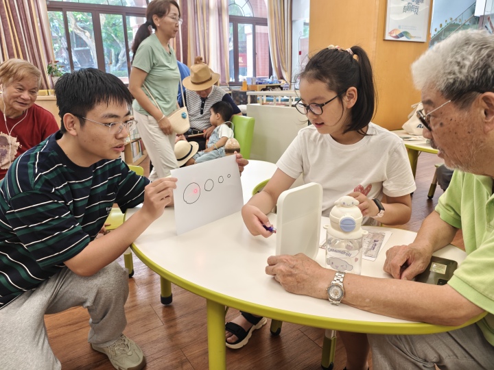 太阳系的奥秘、神秘的动物世界、人体知识、中华国学经典、文字的演变……志愿者们在工作之余注重发挥自身优势,对小朋友们进行知识科普,激发小学生的好奇心和想象力。同时,志愿者们还化身校园宣传大使,精彩讲述华理学科特色、人才培养、校园美景、校园美食等。一幅幅画卷徐徐展开,一个个故事引人入胜,令小朋友们心驰神往。