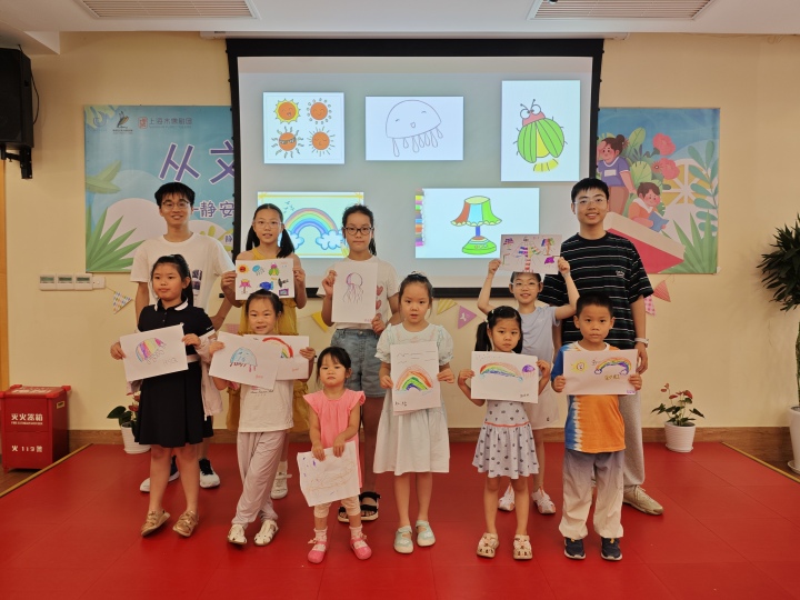 社会与公共管理学院的7名志愿者服务于徐汇区凌云街道第一期爱心暑托班,负责管理与课程安排,所开展课程涵盖艺术鉴赏、心理健康教育、学科知识拓展以及名著阅读分享等,内容丰富且有趣。