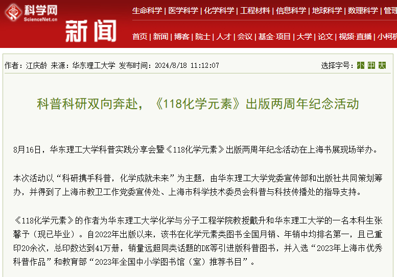 【科学网】科普科研双向奔赴,《118化学元素》出版两周年纪念活动