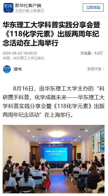 【新华社客户端】华东理工大学科普实践分享会暨《118化学元素》出版两周年纪念活动在上海举行
