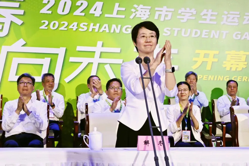 图片说明:上海市副市长解冬宣布2024上海市学生运动会开幕