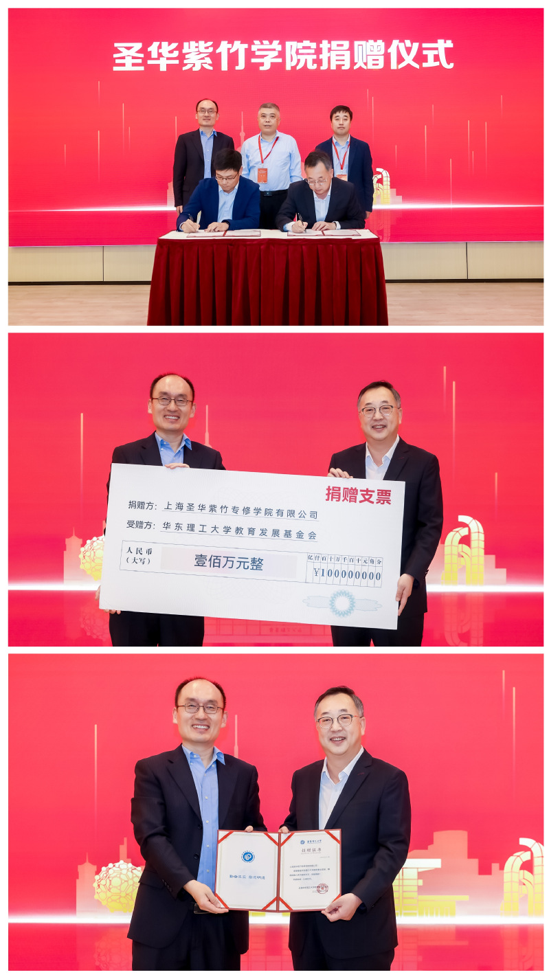 大会上举行了捐赠仪式,唐继锋代表圣华紫竹学院向数学学院发展基金注入资金100万,用于学院学科建设、师资建设、人才培养等。林辉球代表学院签署捐赠协议。鲍亮代表学院接收捐赠支票,并向唐继锋颁发捐赠证书。