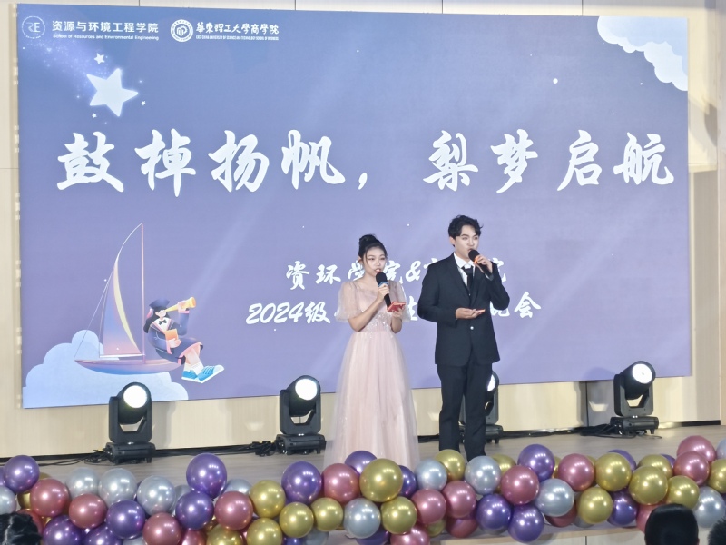为提升文化育人实效,11月16日晚,资环学院和商学院联合举办了“鼓棹扬帆·梨梦启航”2024级研究生文艺晚会,资环学院党委副书记曹娜、党政办公室副主任吴月欣、研究生辅导员孙茜、李娜,商学院研究生教学负责老师彭姝雯、李晓博,两院研究生等300余人共同参加。晚会由两院2024级研究生新生万骐胜和王艺桥共同主持。