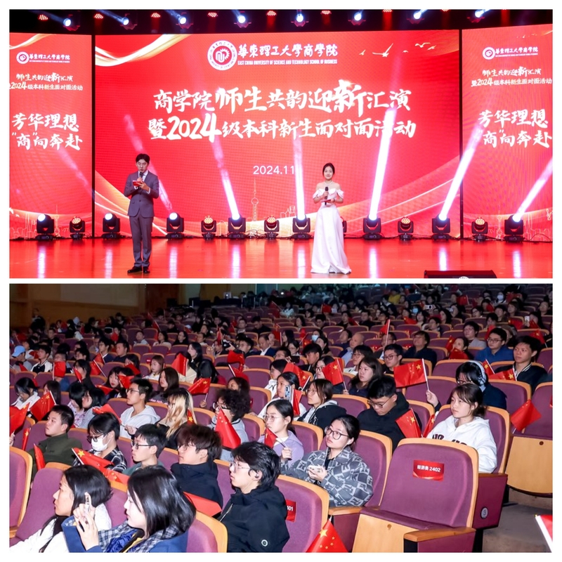 11月19日,商学院师生共韵迎新汇演暨2024级本科新生面对面活动在奉贤校区举行。商学院党政班子成员、近200名教职员工与2024级新生欢聚一堂,共赴双向奔赴的崭新旅程。